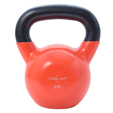 TITAN LIFE Kettlebell er velegnet til din hjemmetræning såvel som et professionelt fitnesscenter. Denne kettlebell er produceret i slidstærkt støbejern og har en vinyl overflade, som har en praktisk funktion. Vinyl overfladen betyder at denne kettlebell ikke slider eller ridser dit gulv. Øvelser med kettlebells giver dig gode muligheder for, at udøve øvelser til hele din krop på én gang, da det kræver både balance, fleksibilitet og udholdenhed. Anbefalede øvelser med kettlebells er Kettlebell Swing, Windmill, Goblet Squat og the Snatch. Med disse øvelser styrker du især glutes og lår. Sving bevægelsen tilføjer et kardiovaskulært element til din styrketræning, som betyder at du samtidig også forbrænder fedt.